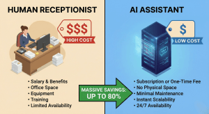 The most immediate impact of adopting AI is on your payroll. Hiring a full-time human receptionist or administrative assistant is a significant financial commitment. In Australia and the US, the average annual salary for a receptionist can range from $45,000 to $60,000, not including superannuation, taxes, paid leave, and the cost of equipment.